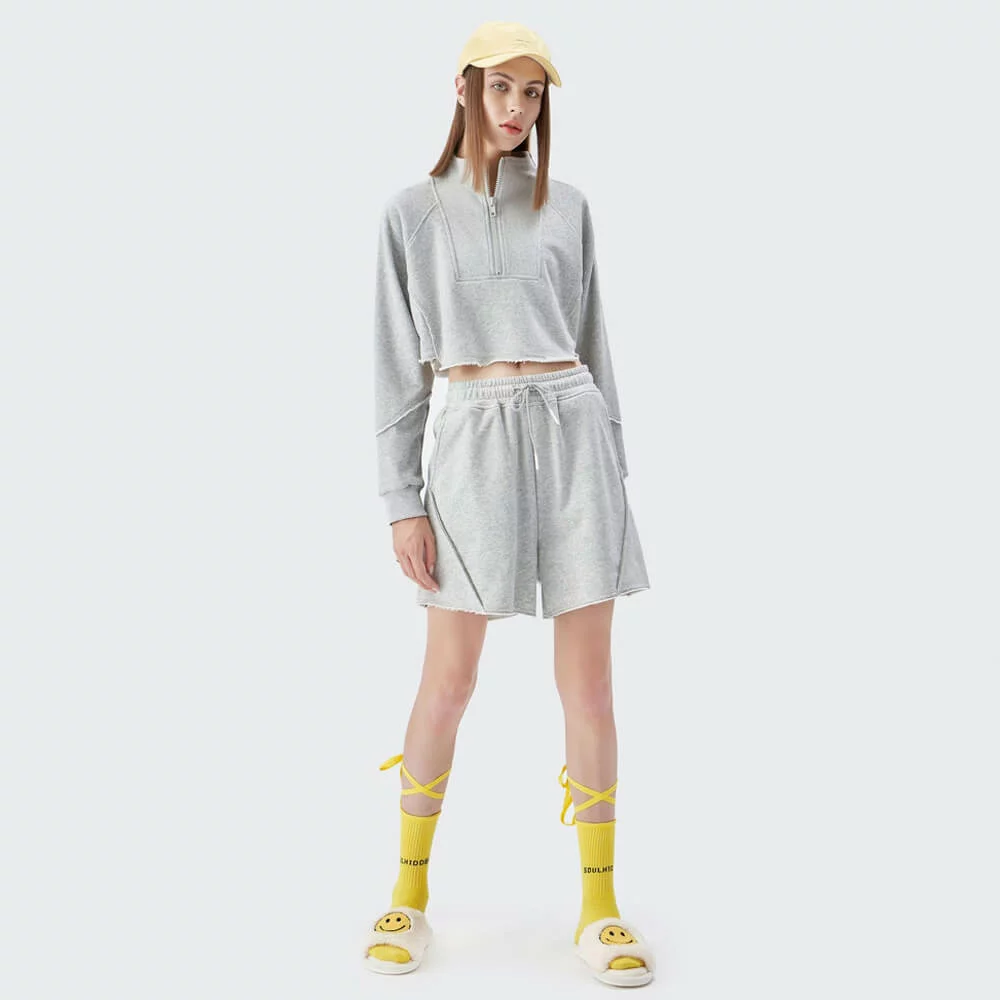 Womens quater zip up cropped pullover sweatshirt wholesale