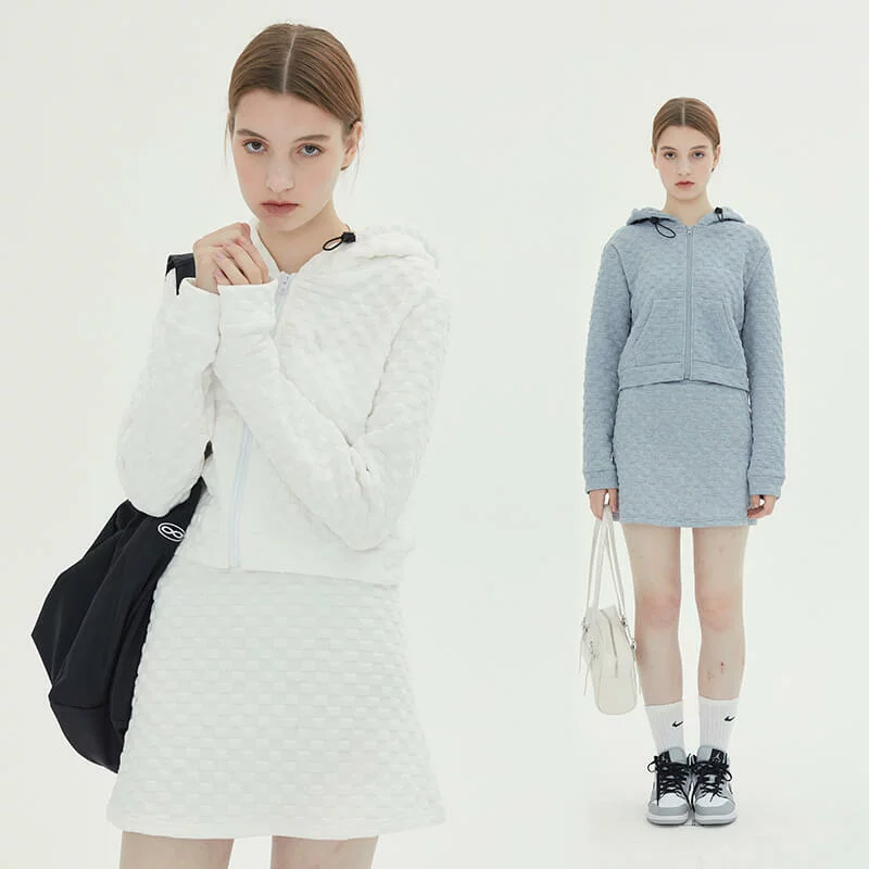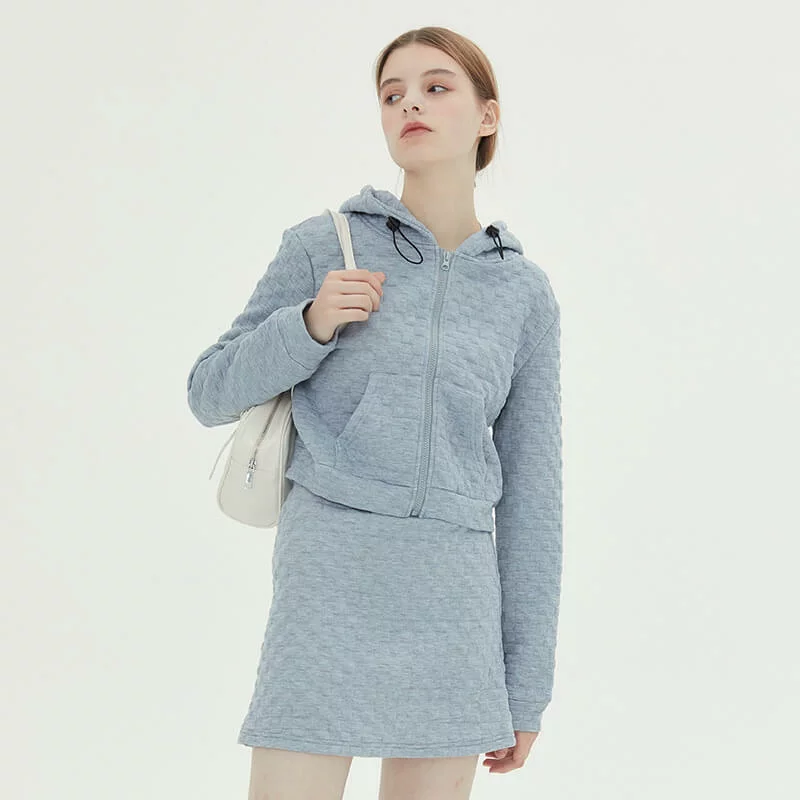 Tags basic, cropped, custom printing, Eco-friendly & Sustainable, hoodie, lightweight, long sleeve, skirt, stopper, tracksuit set, waffle, womens, zip up